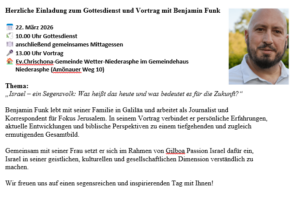 - Herzliche Einladung zum Gottesdienst und Vortrag mit Benjamin Funk am 22.03.2026